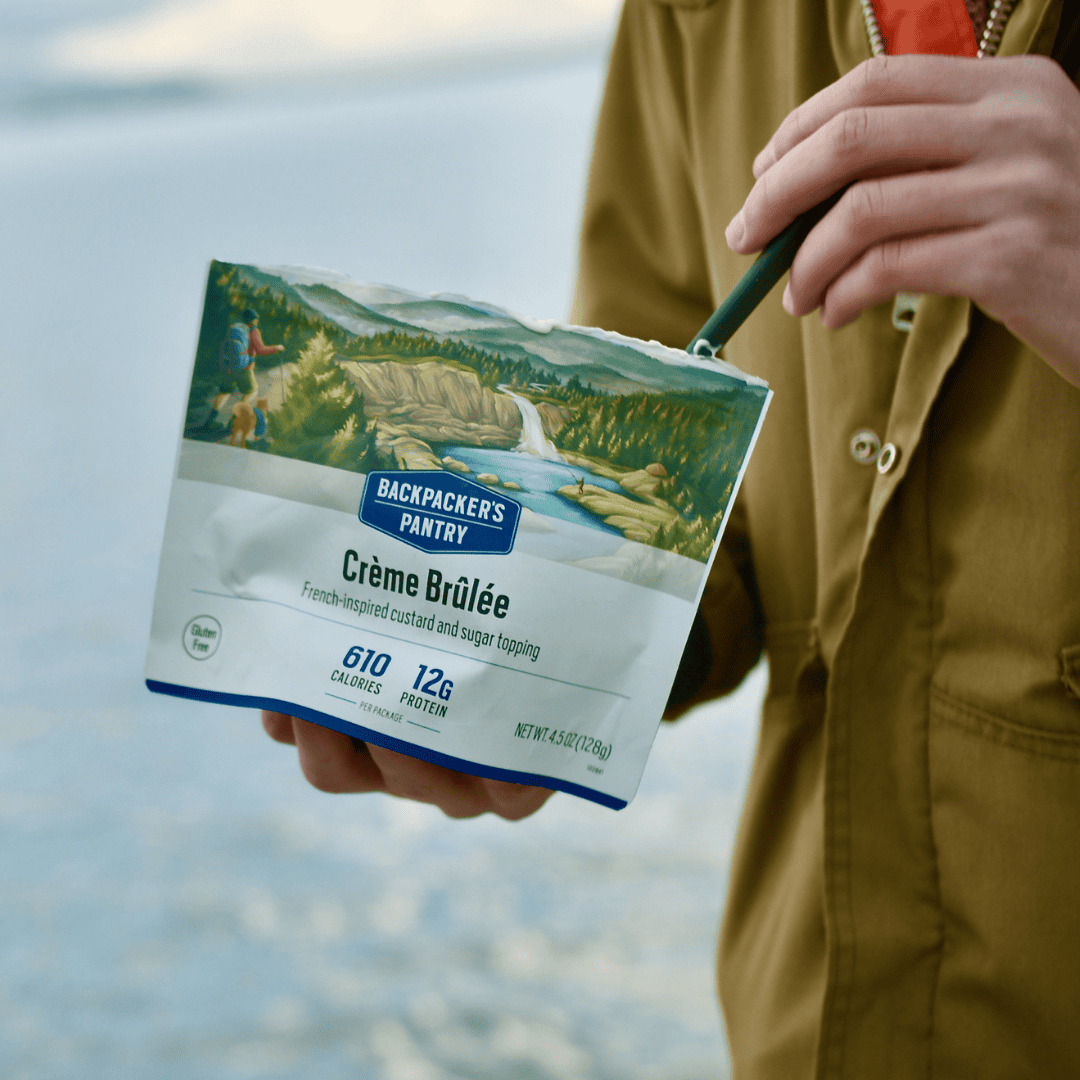 No camping stove? No problem. Enjoy our no-cook Creme Brûlée - just add cold water.