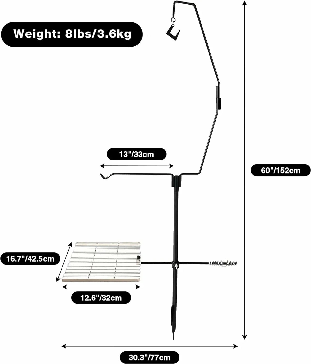 - Package Include: Grill Grate, Spiral Handle, Poles, Hook, Carry Bag