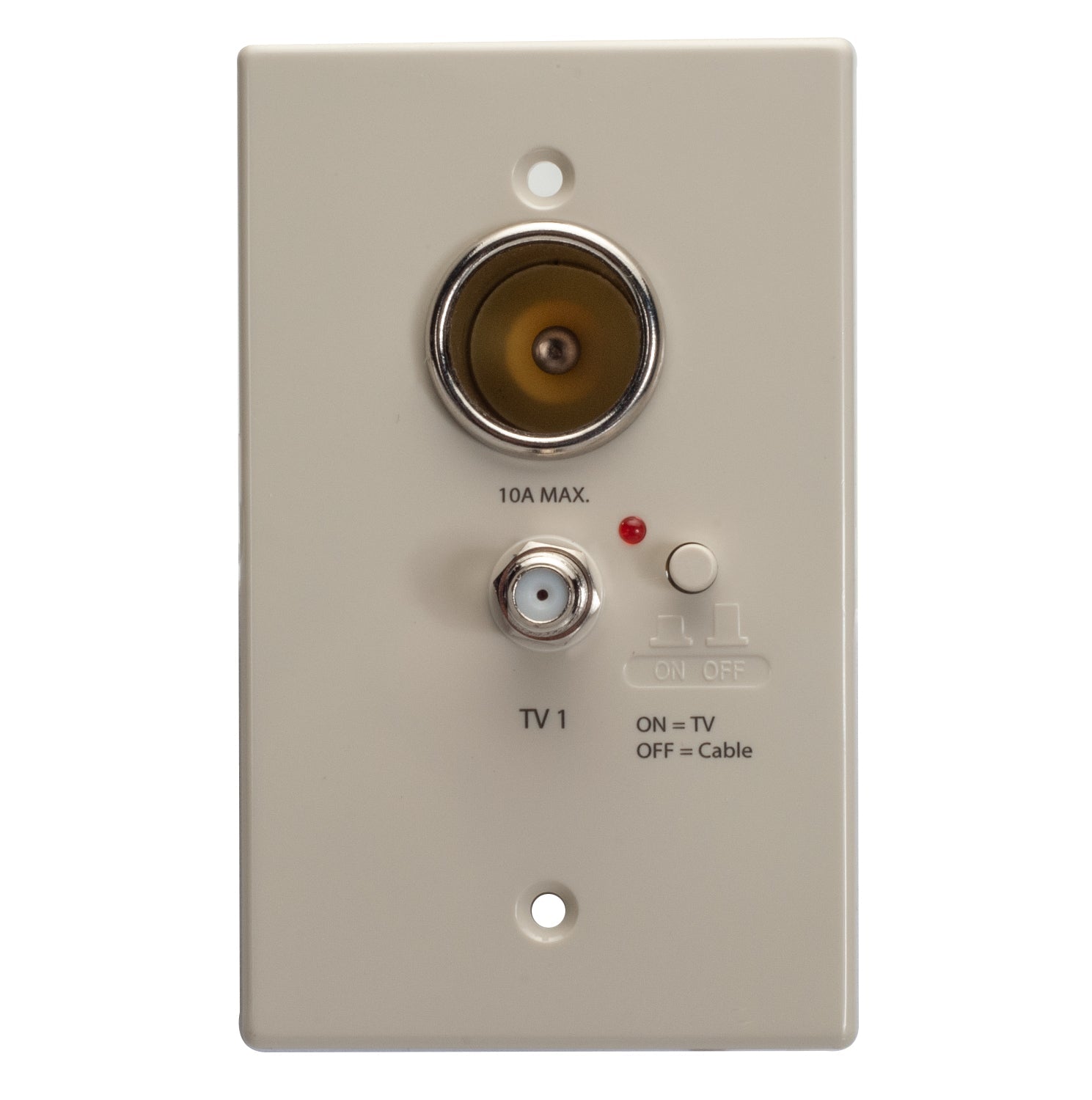 The versatile 12V Power Outlet | Antenna Distribution Wall Plate, the perfect solution for your audiovisual needs. This innovative wall plate combines functionality and convenience in one compact design.