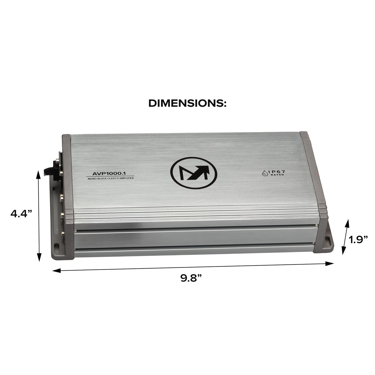 AquaVibe Pro Mono-Channel Class D 1000-Watt Marine Amplifier IP67 Rated