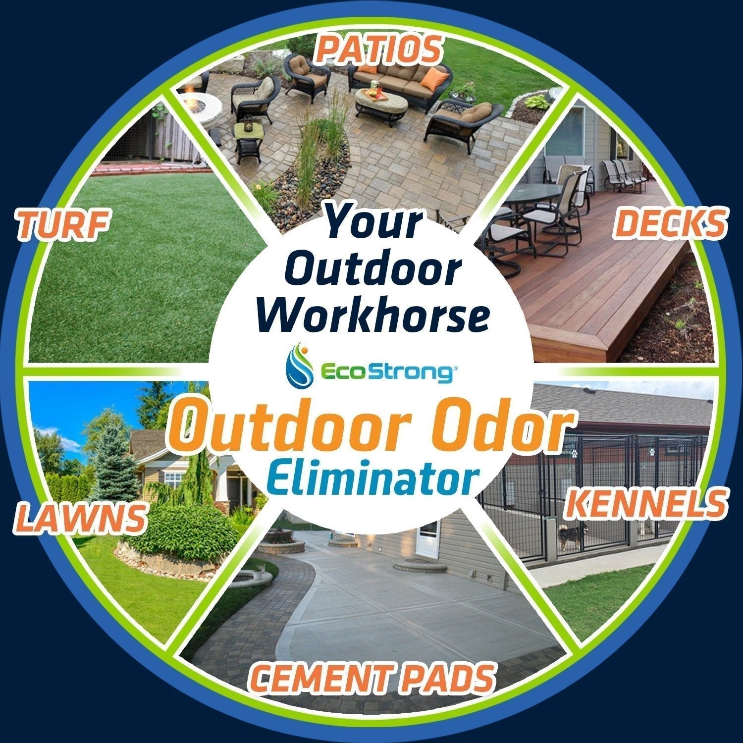 Eliminate dog and cat urine and feces odors from your outdoor living space. When you’ve tried everything else, and nothing has worked, EcoStrong’s Outdoor Odor eliminator will get the job done or your money back.