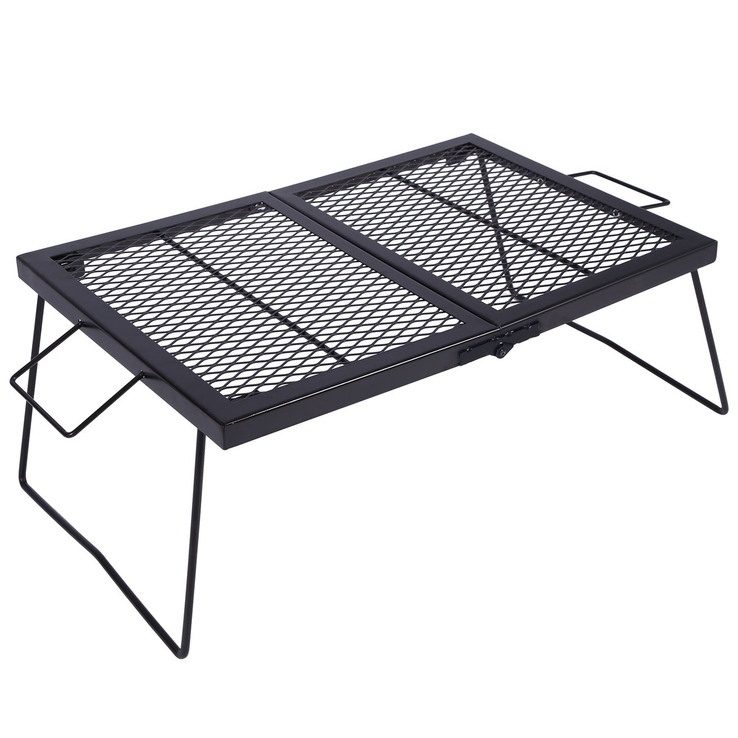 Portable Heavy Duty Folding Steel Campfire Grill Grate for Outdoor Cooking, Black